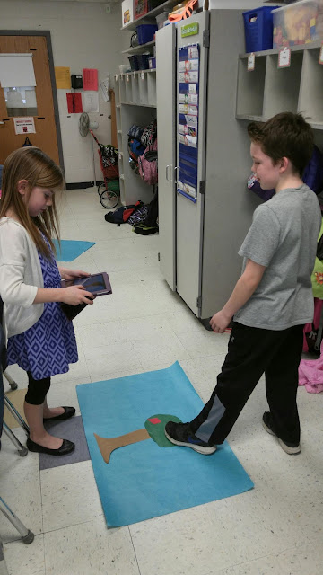 Today, our class read Stuck. We learned that Floyd got lots of stuff stuck in his tree. Such as a kite, shoes, a duck, a truck, the house next door, the kitchen sink, and a giant whale. That's a lot of stuff, right? Then, we made our own movies! We used stop motion pictures to create the movies.